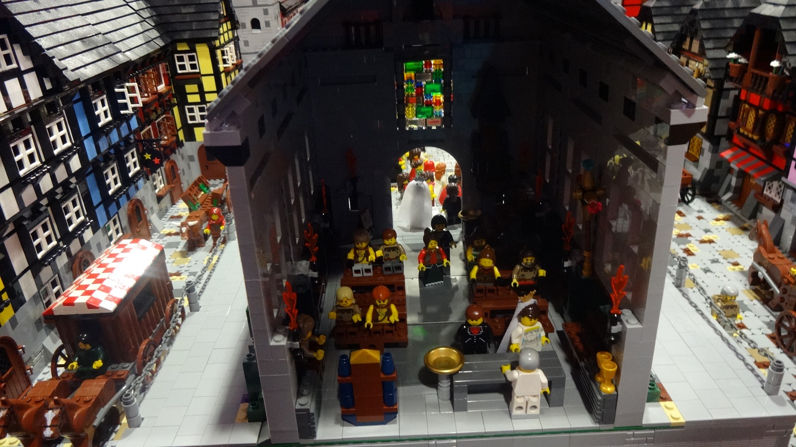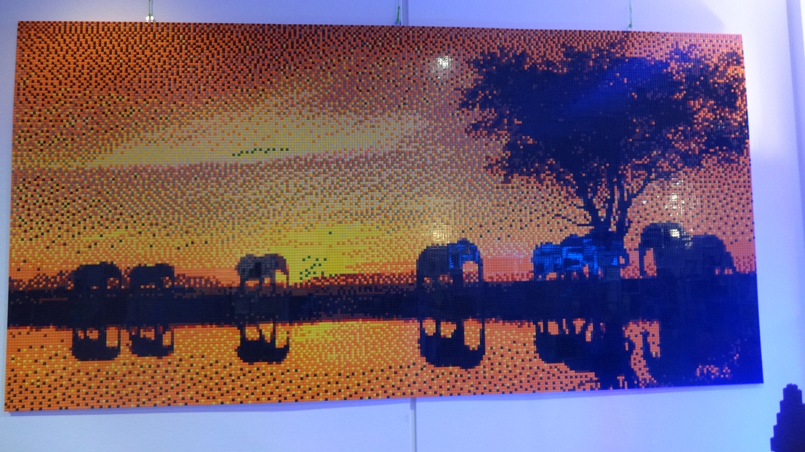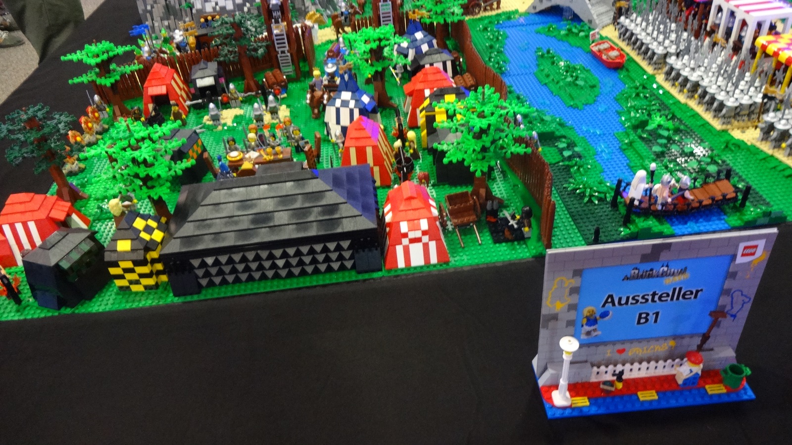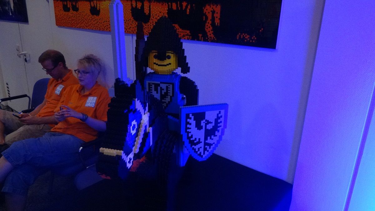 Nun fand ich Tobias und seine Sparschweine. Daneben ein ganz großer Ritter. Beeindruckend. Leider lenkte das vom eigentlichen Hingugger ab: die 2 riesigen Legobilder erblickte ich gar nicht, dachte erst, das gehört zur Halle. Erst als ich von Michael darauf aufmerksam gemacht wurde, ging ich später nochmals vorbei und schaute mir diese an.