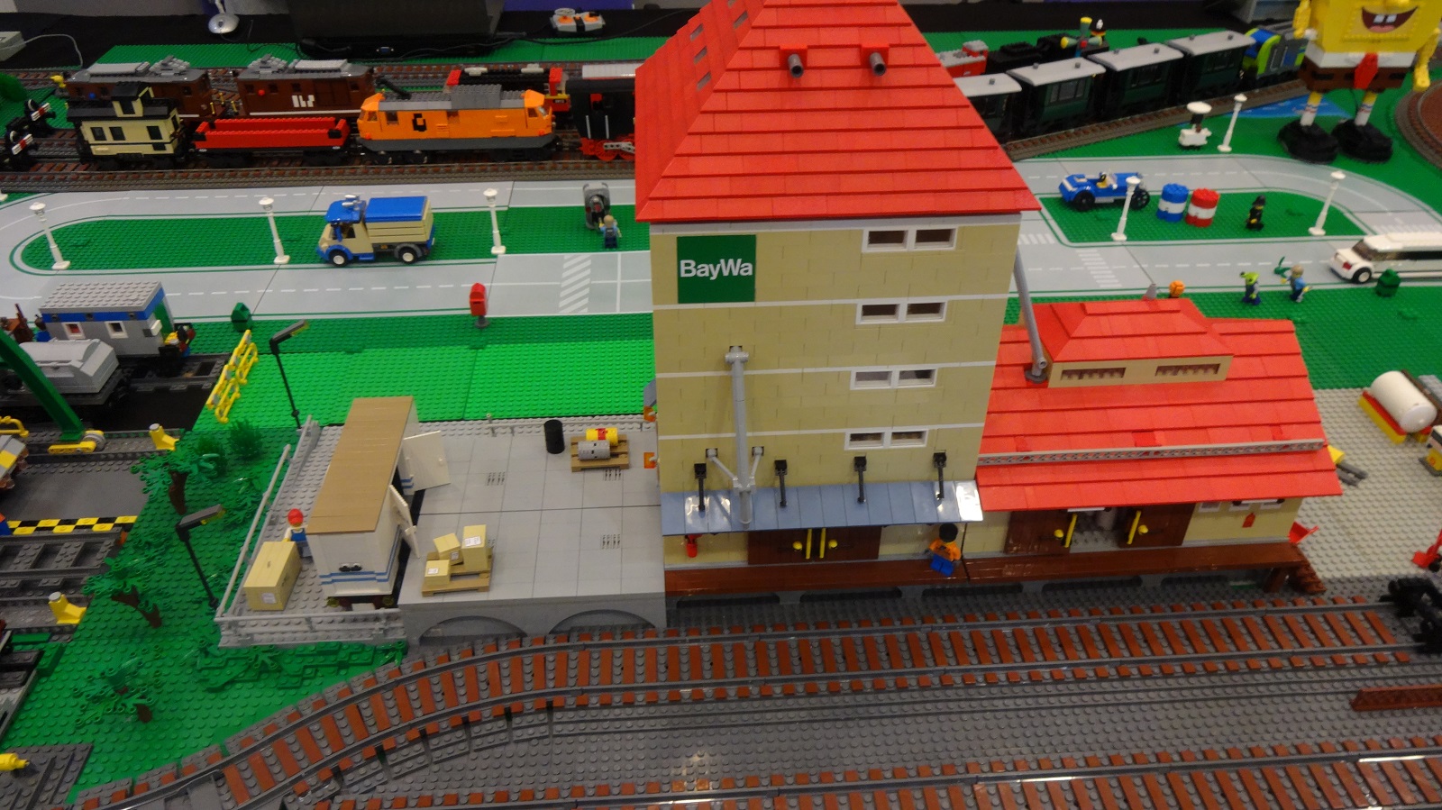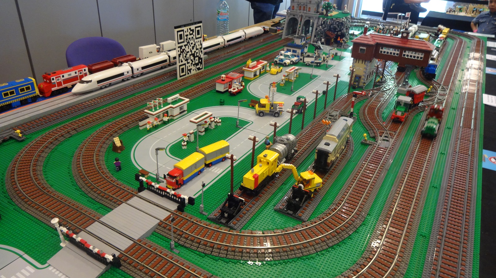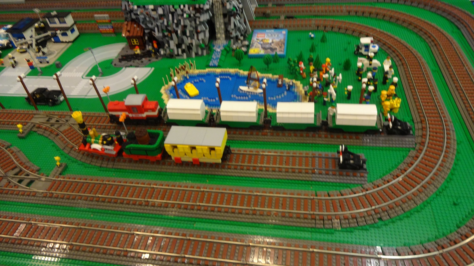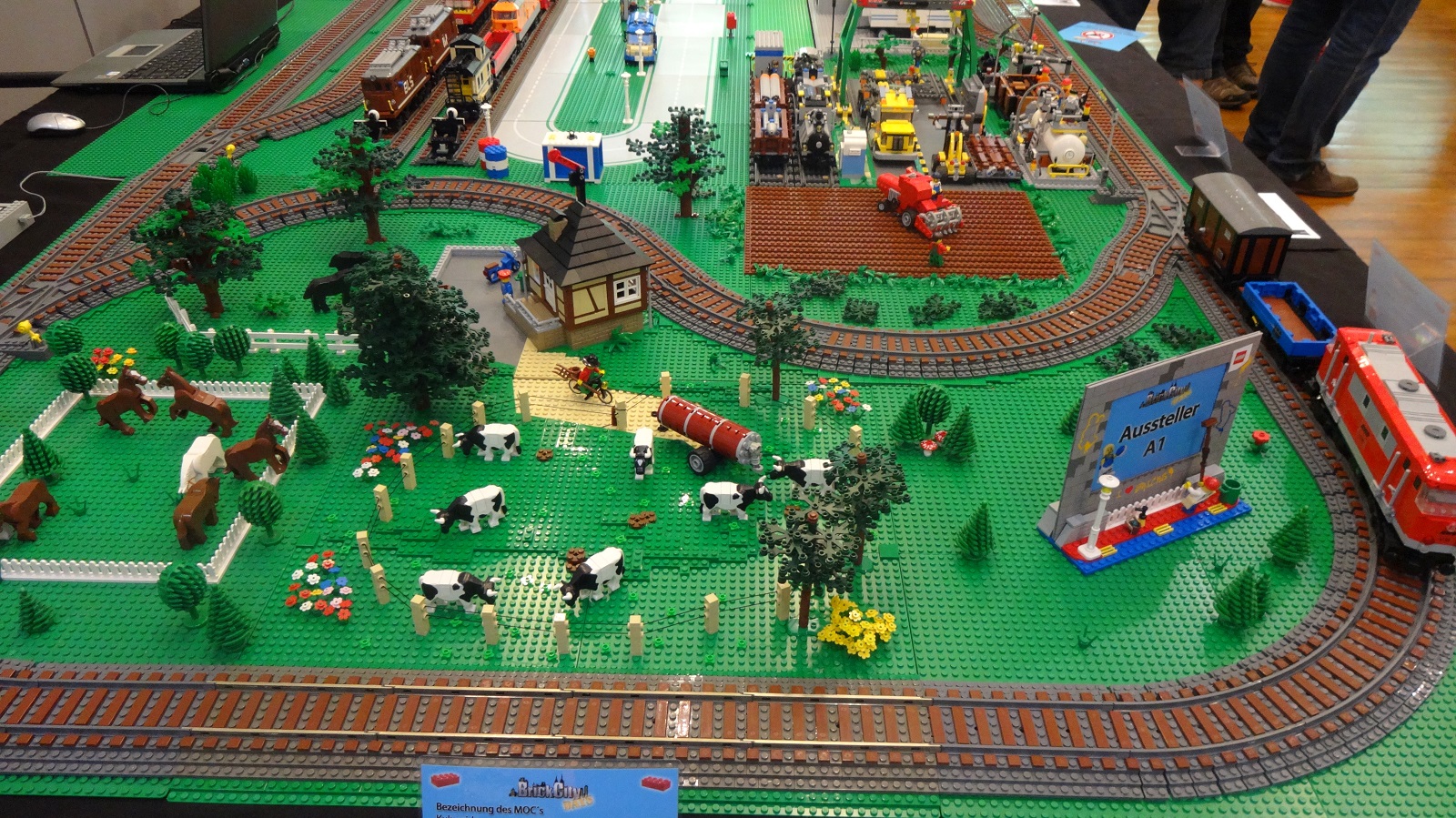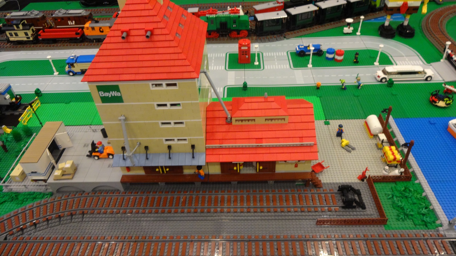 Nun ging es in die andere Ecke. Dort waren die großen Legowelten aufgebaut: Thomas (Kirk) hatte mit Lok24 eine schöne Eisenbahn aufgebaut. Da wir das demnächst auch wollen, mußte ich mir das genauer anschauen.
