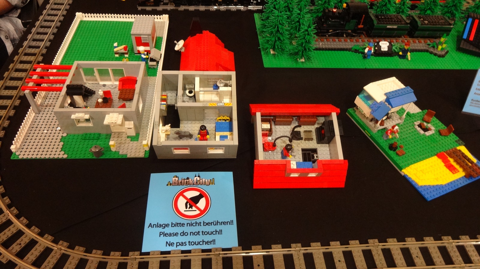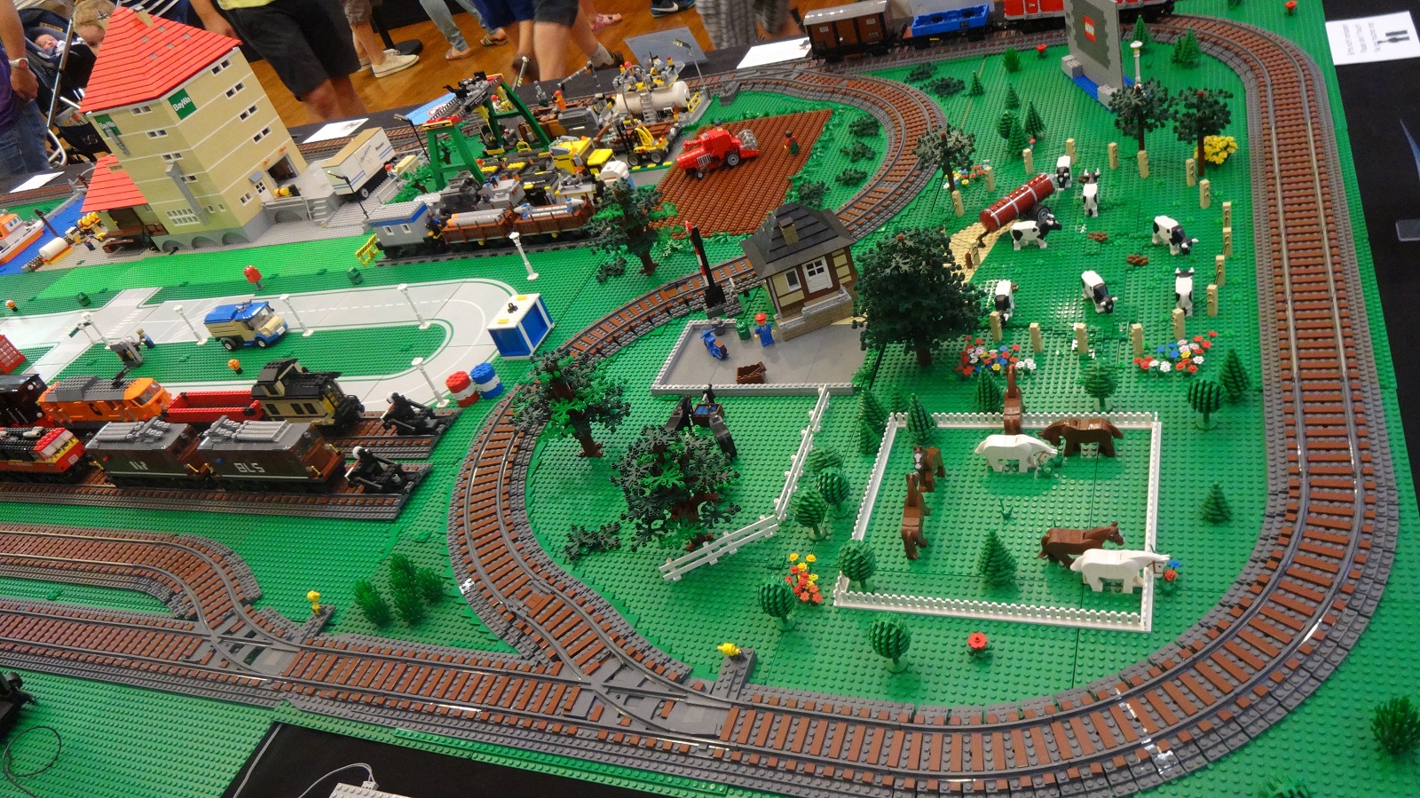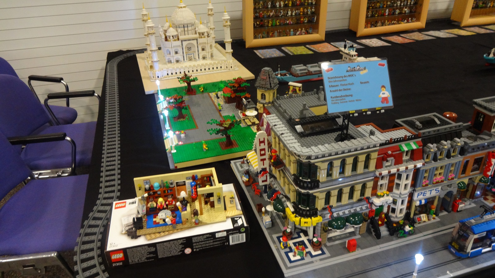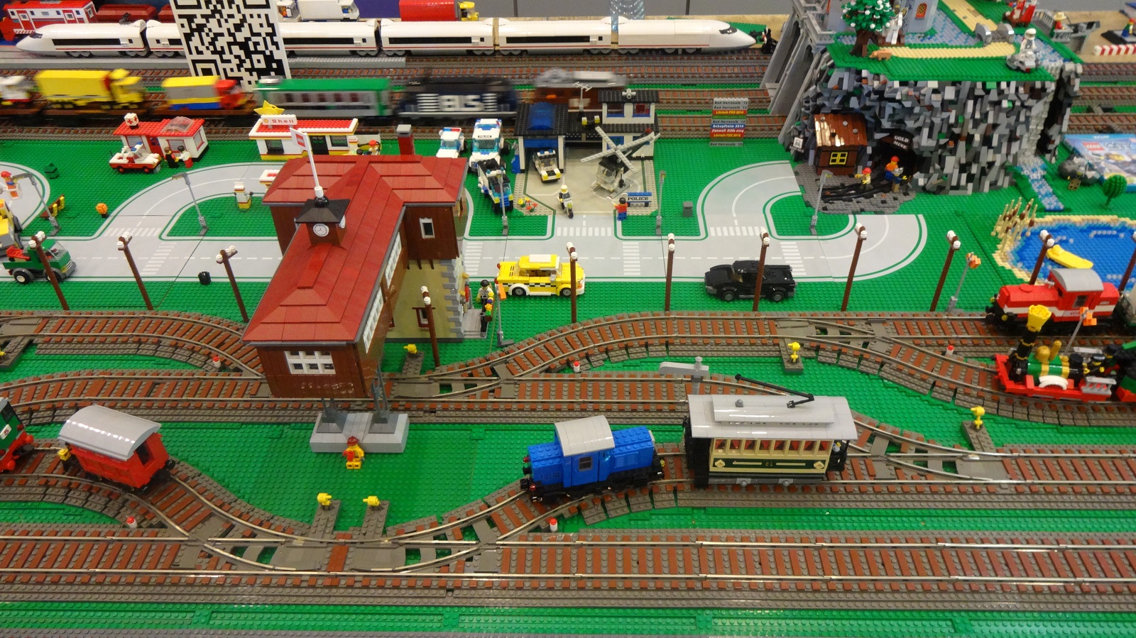 Nun ging es in die andere Ecke. Dort waren die großen Legowelten aufgebaut: Thomas (Kirk) hatte mit Lok24 eine schöne Eisenbahn aufgebaut. Da wir das demnächst auch wollen, mußte ich mir das genauer anschauen.