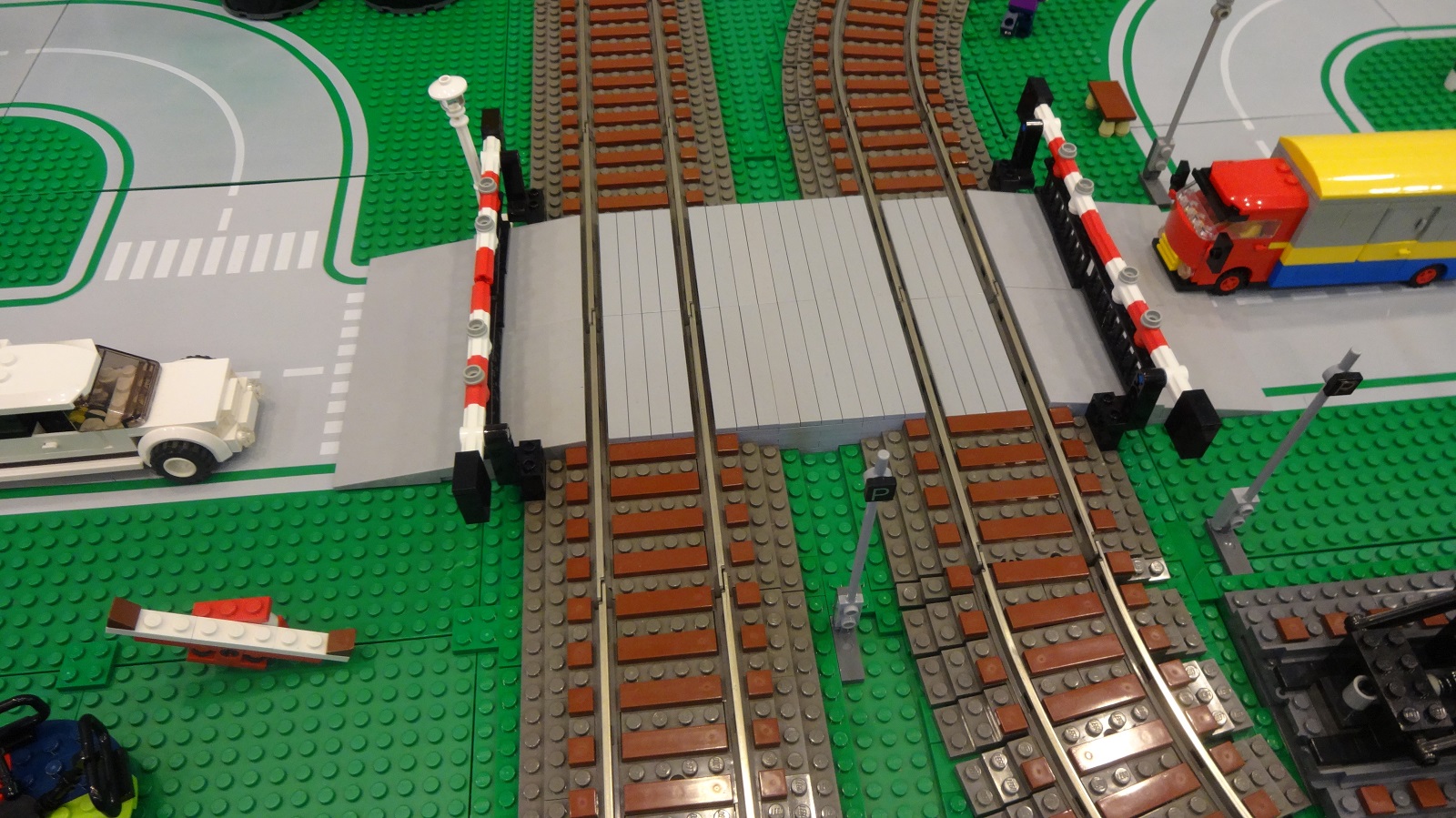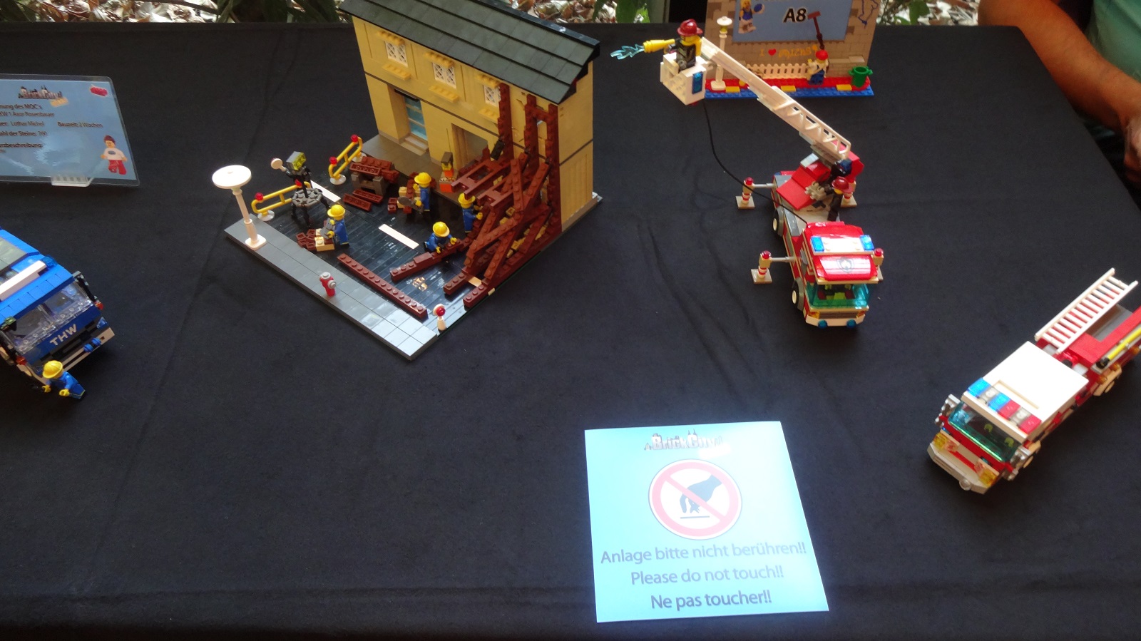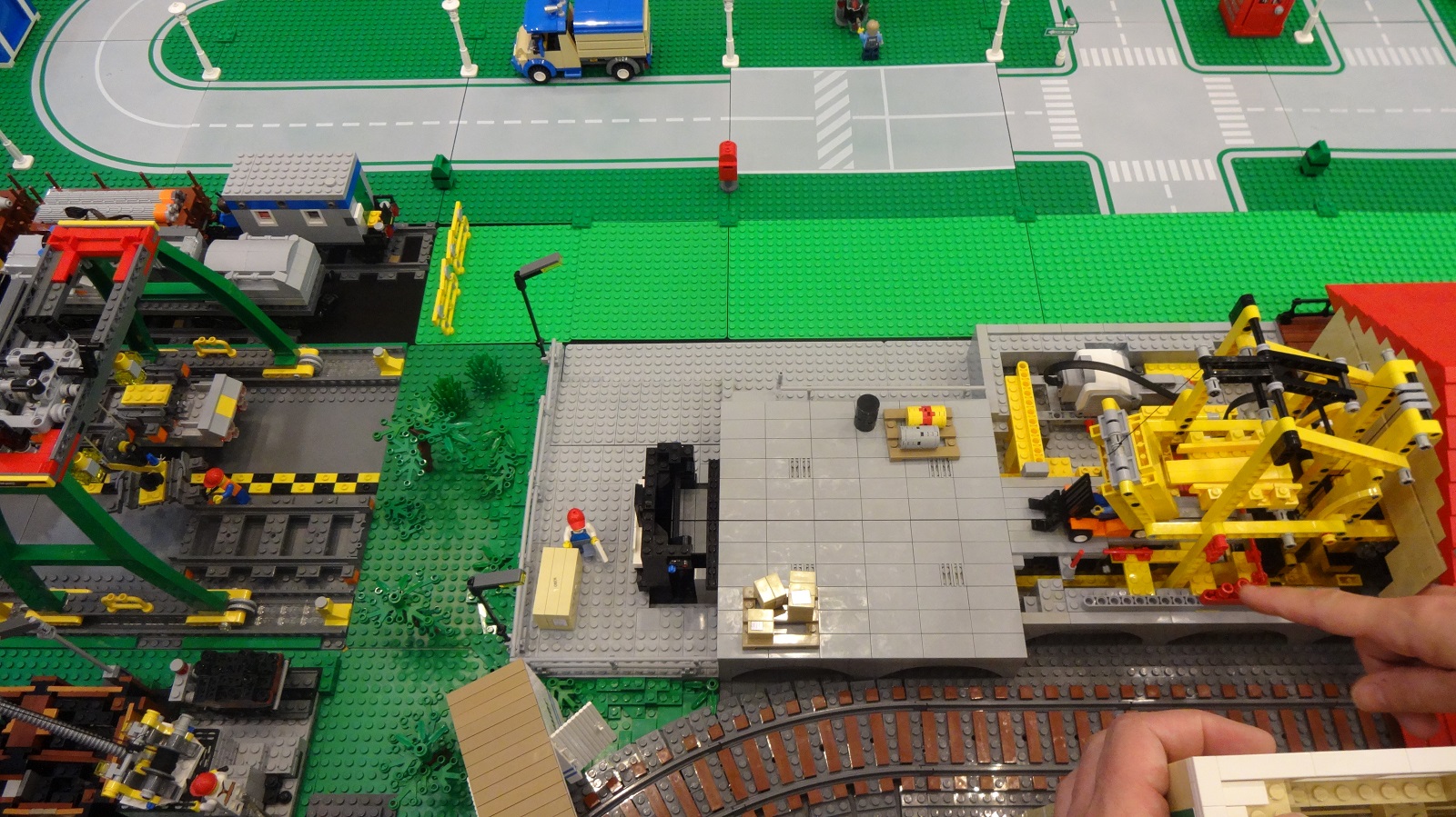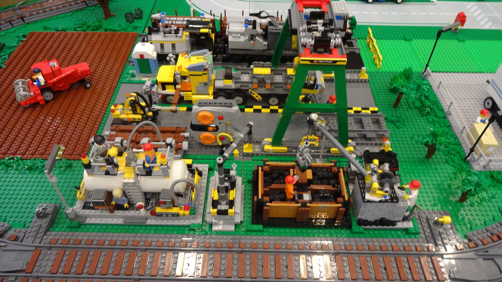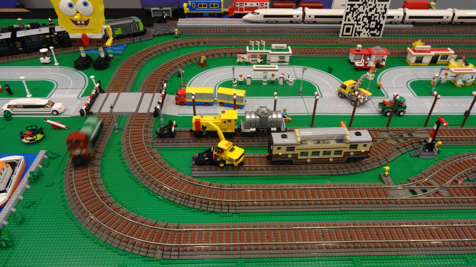 Nun ging es in die andere Ecke. Dort waren die großen Legowelten aufgebaut: Thomas (Kirk) hatte mit Lok24 eine schöne Eisenbahn aufgebaut. Da wir das demnächst auch wollen, mußte ich mir das genauer anschauen.